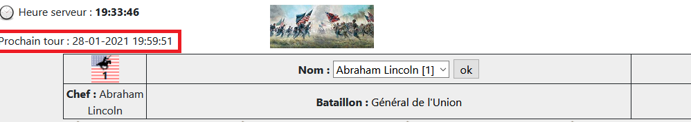 Vous pouvez consulter la date et heure d'activation de votre prochain tour en haut à gauche de la page principale de jeu :